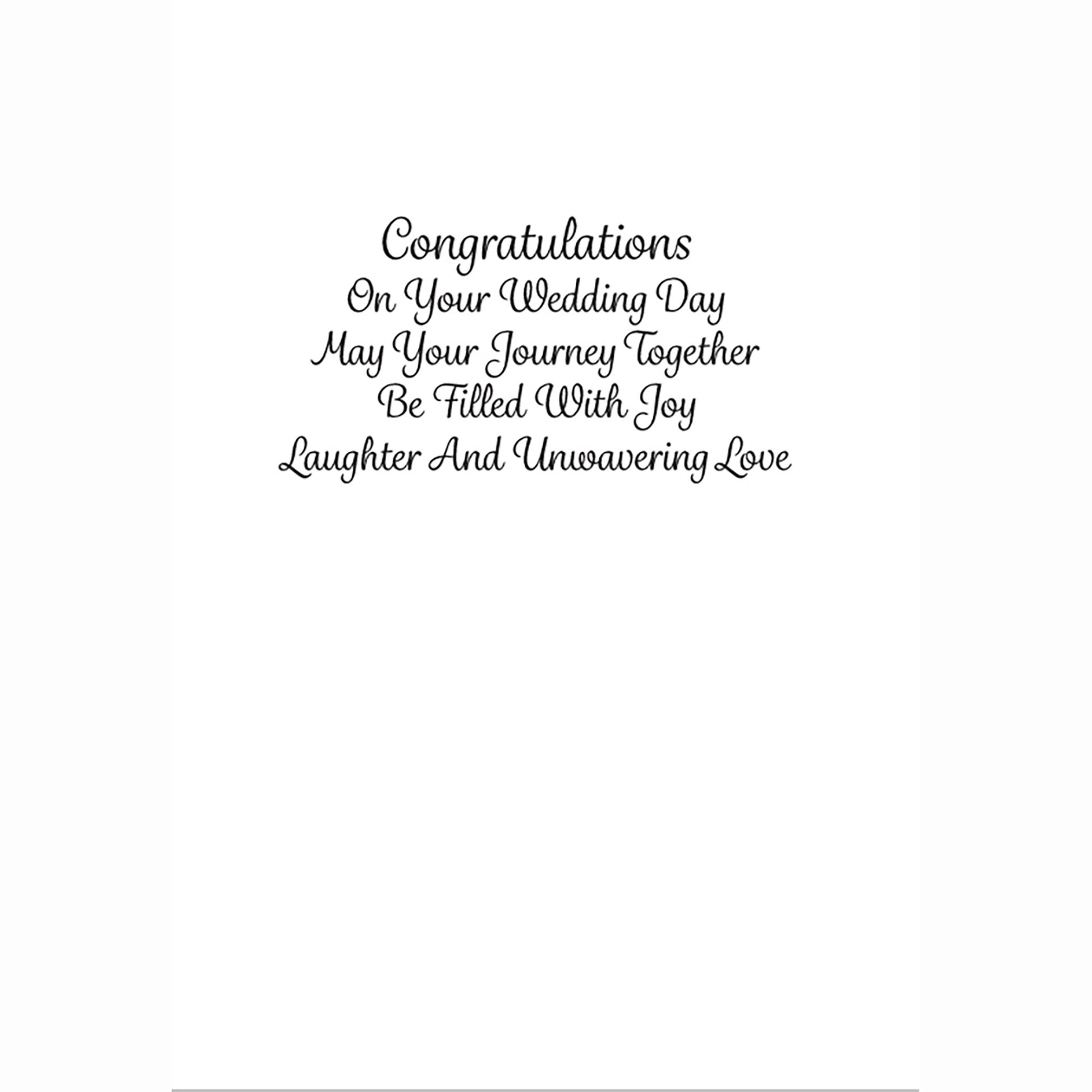 Experience the beauty and joy of love with this stunning wedding card of a young couple on their special day. With a breathtaking backdrop of natural light, the bride's radiant smile and bouquet of vibrant flowers will inspire feelings of happiness and love.